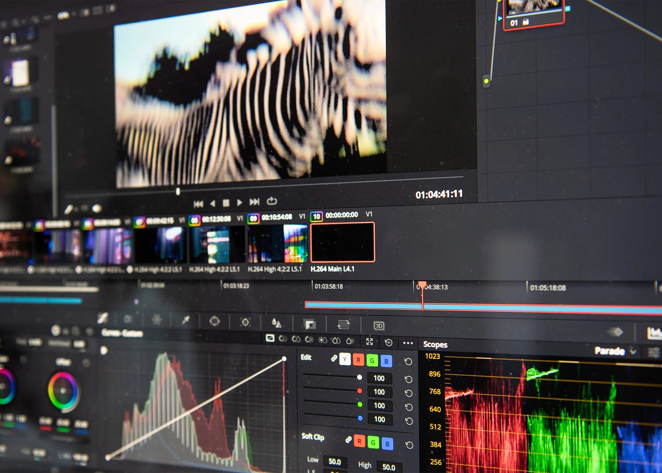 In this Time-Based Media editing and finishing intensive, students learn professional strategies and workflows for completing polished time-based (digital video and/or animation) projects, including color grading, video effects, and audio mixing. Students are introduced to the wide range of tools and techniques available in Blackmagic Design’s DaVinci Resolve software, as well as Adobe After Effects and advanced features of Adobe Premiere and Audition. Previous coursework or related experience with video production, animation, and non-linear editing is required. Students should begin the class with a planned or in-progress project. This advanced-level class provides both technical skills and individualized guidance with project development. Meetings include technical demonstrations, 1:1 work sessions, viewing/discussion of contemporary time-based works, and class-wide critiques / feedback sessions.